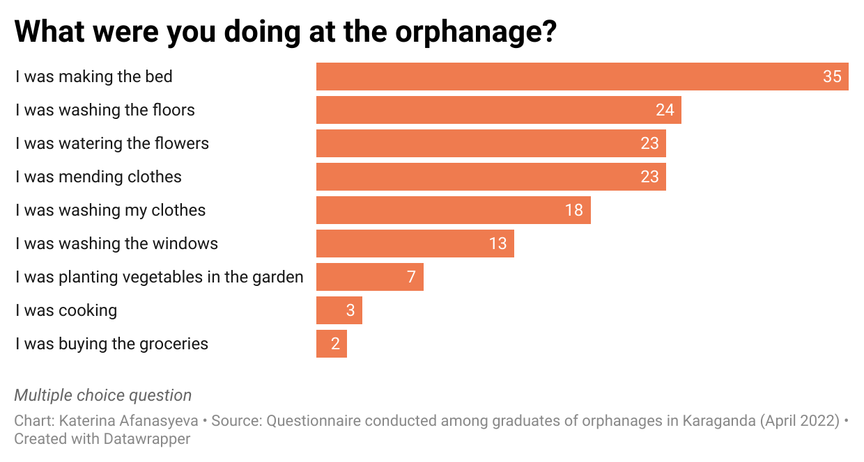 Teach children to cook and make necessary purchases in the store. Only 8% of respondents cooked their own food in an orphanage and only 5% went to the shops on their own.