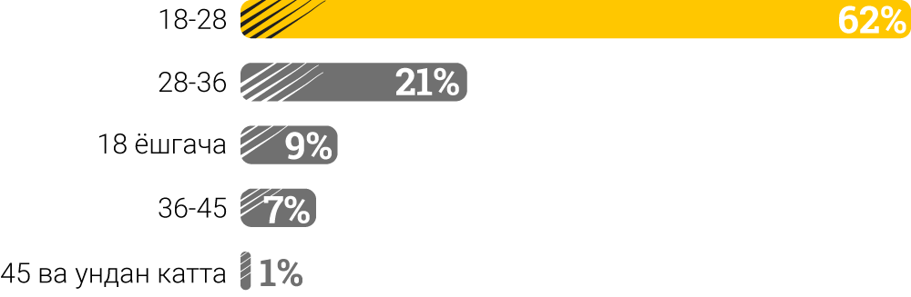 Сўровда иштирок этганларнинг 62% 18-28 ёшда
